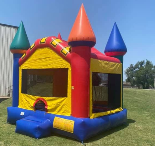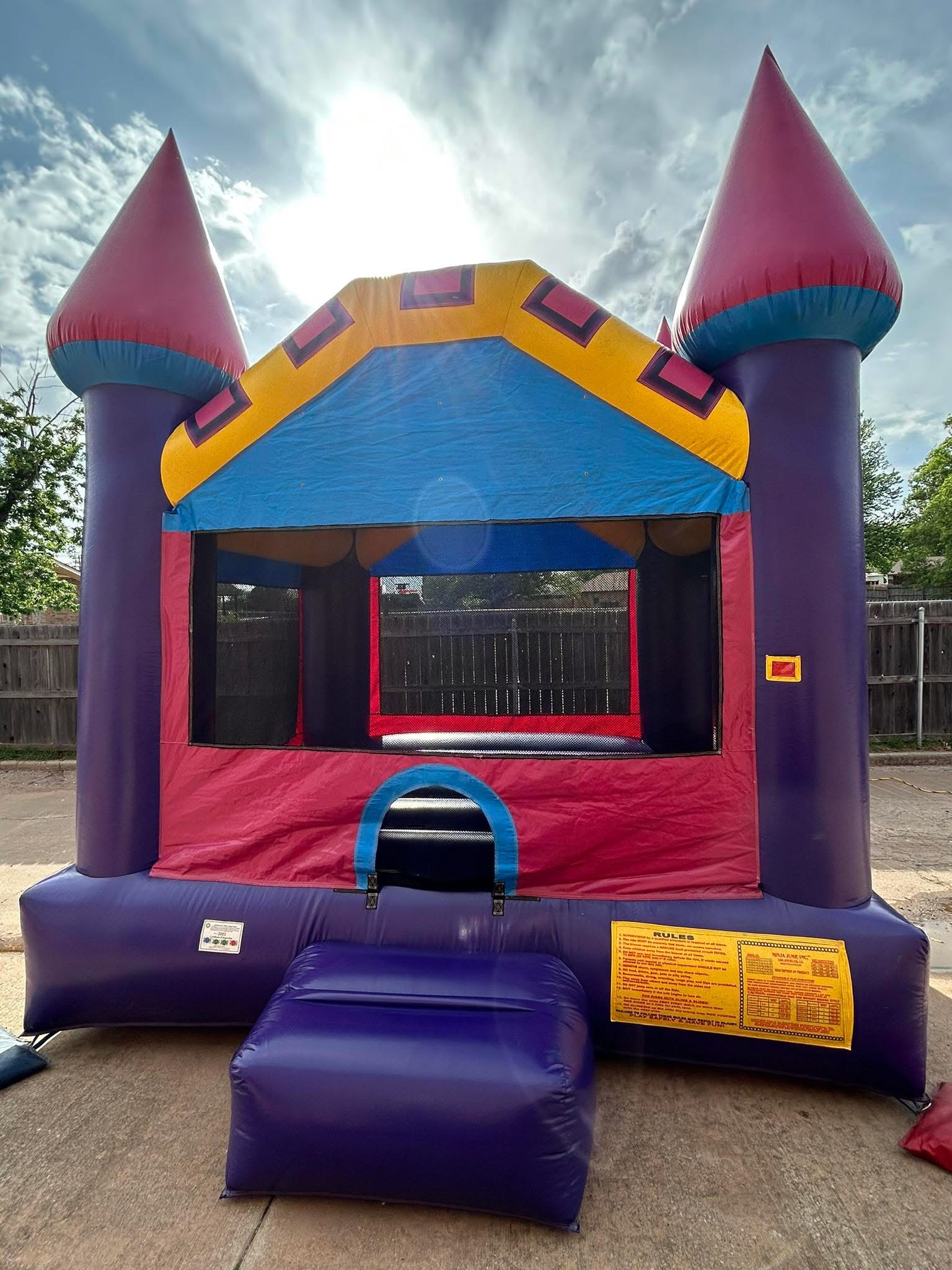 - This Castle moonbounce offers hours of play time, plenty of elbow room and fun. The mesh-covered window openings on each side are finger-friendly and let in cooling breezes.