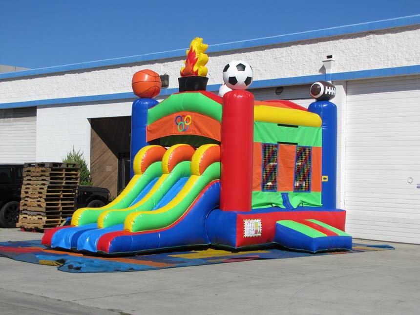 Double the fun with slides and bouncers in one awesome unit!